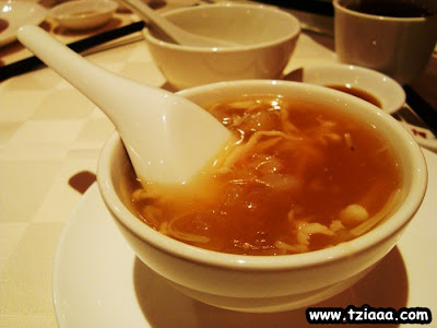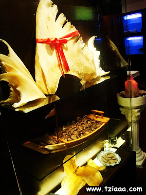 first of all, braised shark fin with hashima & golden mushroom. *slurps