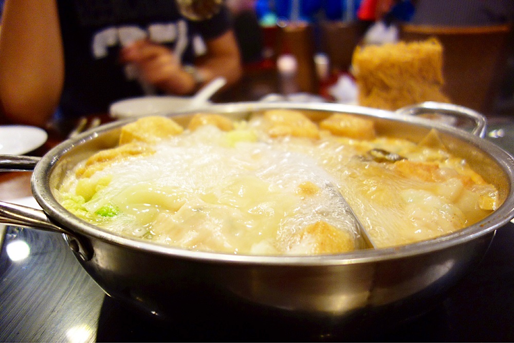 Boiling hot broth, tempting enough.