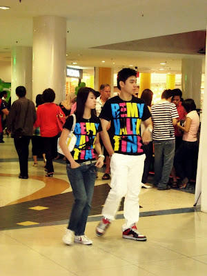 I saw 12136412641896436819237 couples in couple tees *which none of my ex willing to do so*; couples holding hands; girls smiling sweetly with roses/chocolates/soft toys in hand… etc.