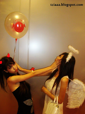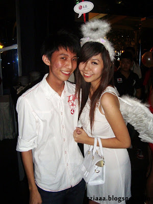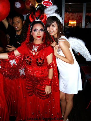 the theme of the launch party is angelic white and devilish red.&, I went as an angel.