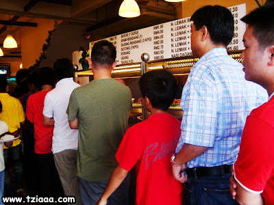 people are lining up patiently to get their own plate of pipping hot nasi lemak.
