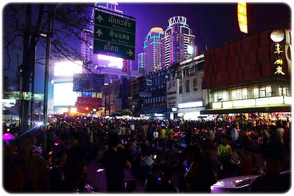 After dinner, it was about 1030. We headed out for the Central World street countdown party. And, we were terrified with the huge crowds! It was so packed, I was literally suffocating. We know, we need to leave the place. 。。(ノ´д)ノ