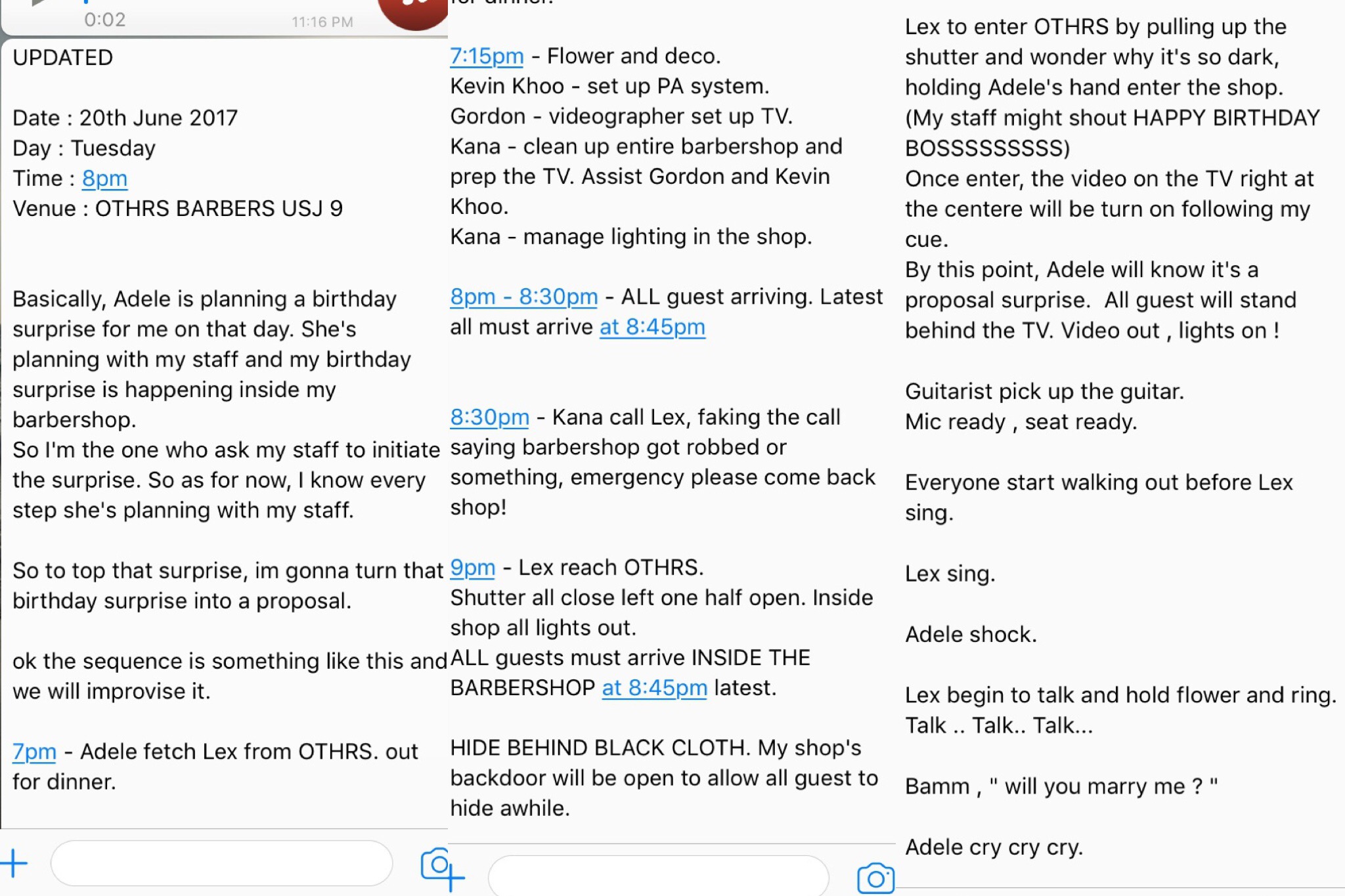 About a month ago, my #annoyingbff’s boyfriend – Lex (an inspirational barber) called me over when he’s cutting SY’s hair. While he was still cutting SY’s hair, he told me, “I have something to announce.. *drum roll* I, am going to, propose to Adele.”